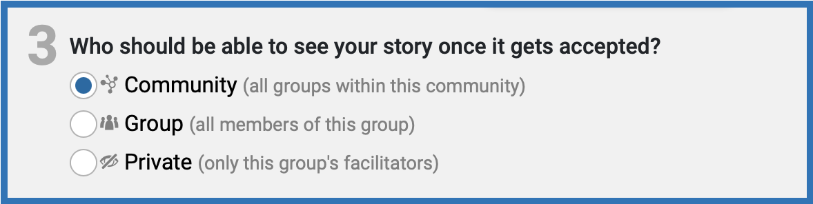 - Choose 1 from the 3 visibility options. This will determine who will be able to read your story once it has been approved.