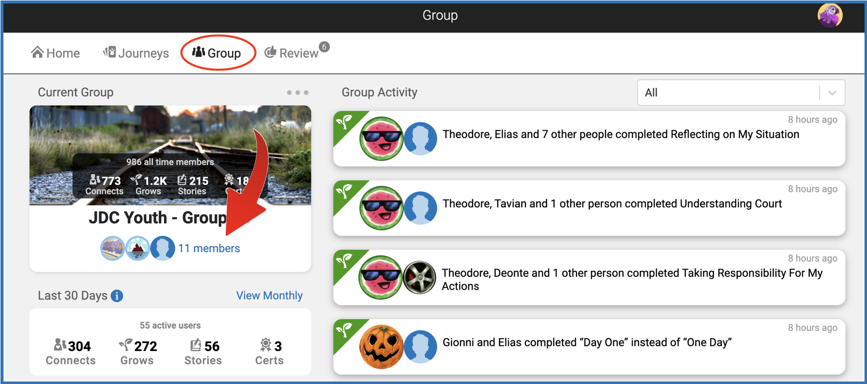 - Click on the Members count link that’s right under the group name to take you to the Members page.