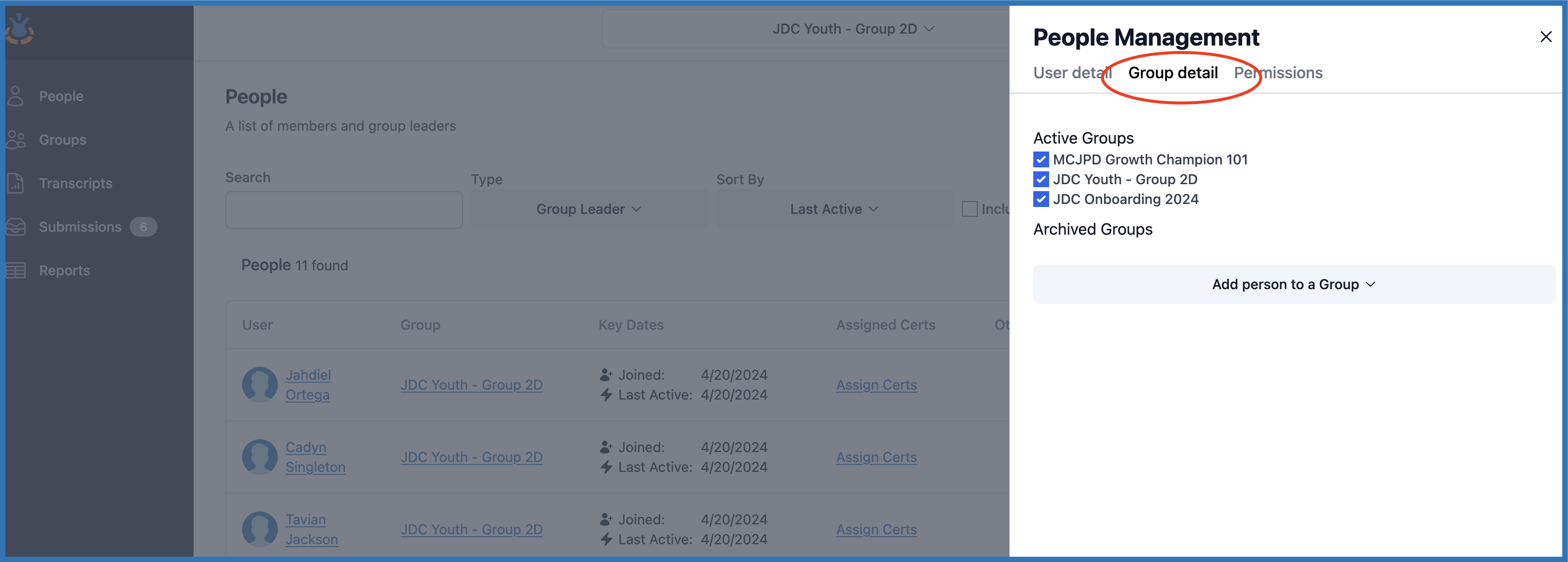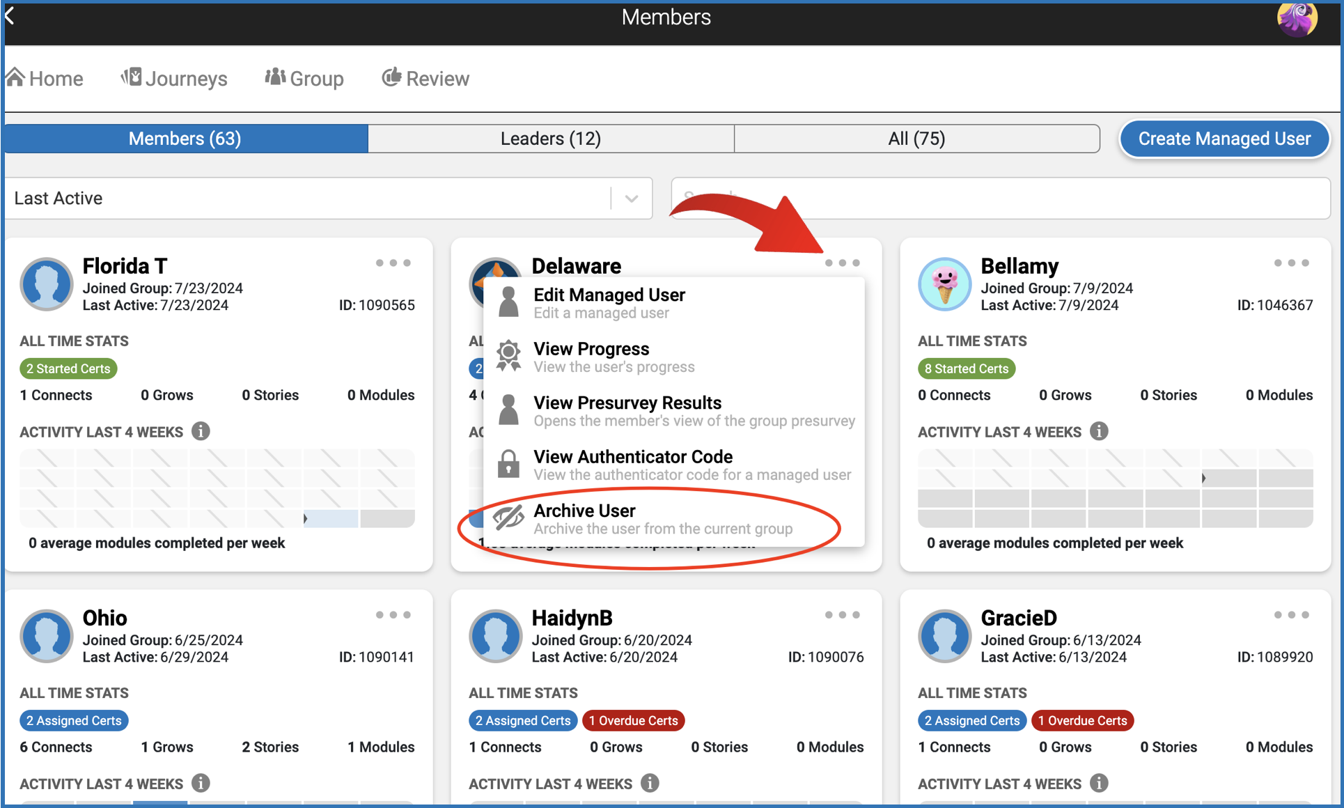 There are two places where group facilitators can archive members of the group. See the steps below to learn how: