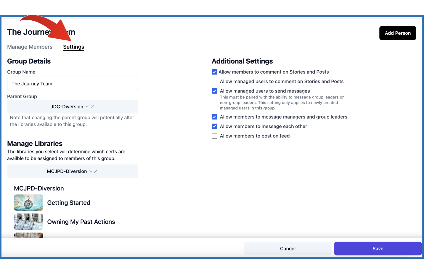 Group Managers now have the ability to set and change some basic settings in their groups such as the following: