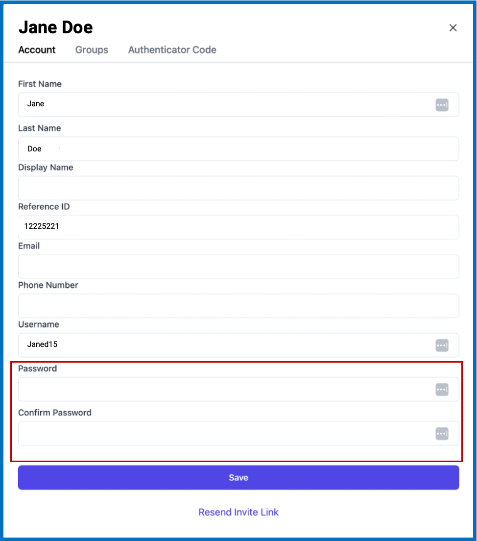 Other data such as Name, Display Name, Reference ID, Username, and Email may also be changed here if needed.