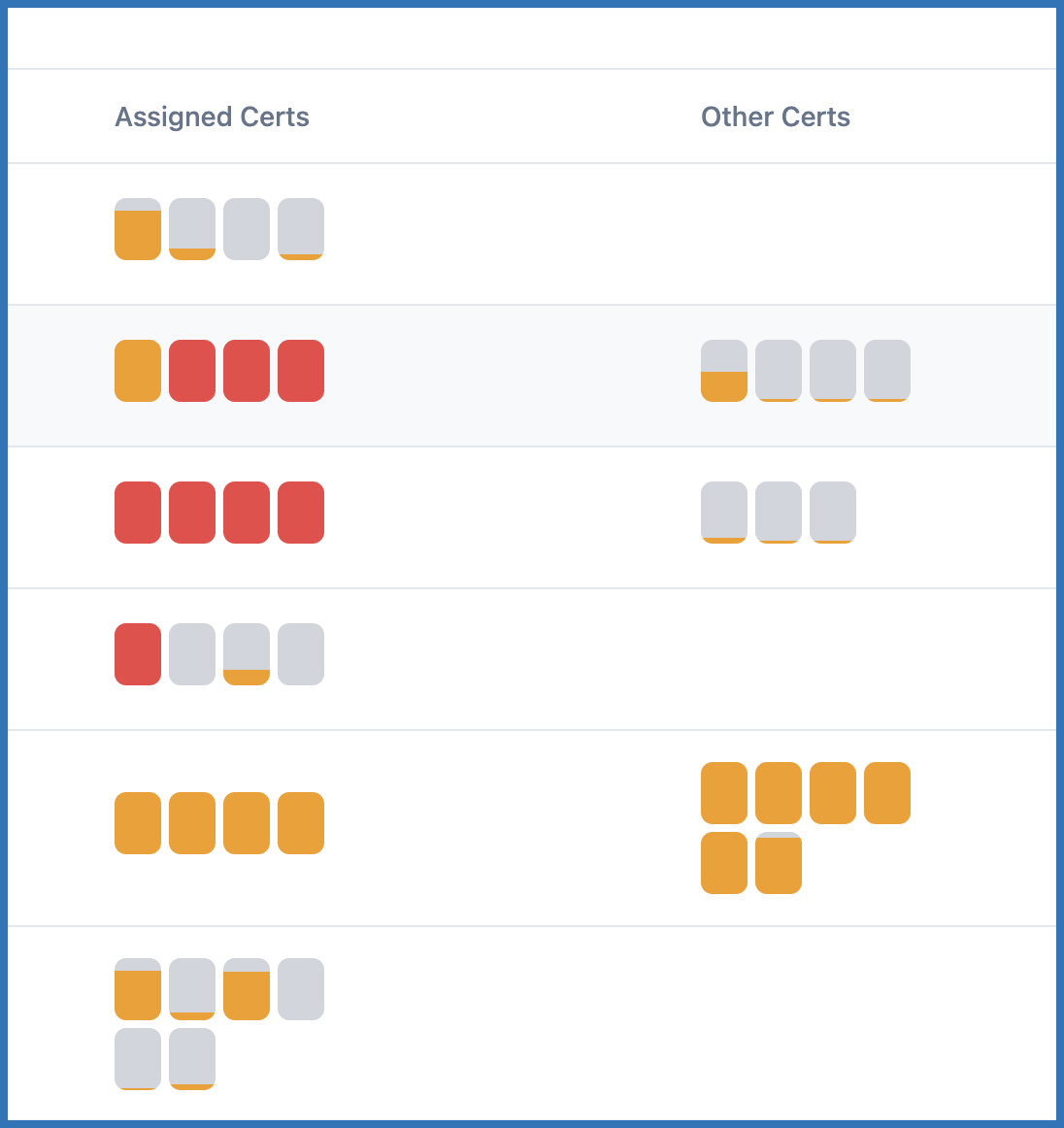 - Full red - assigned cert that's overdue