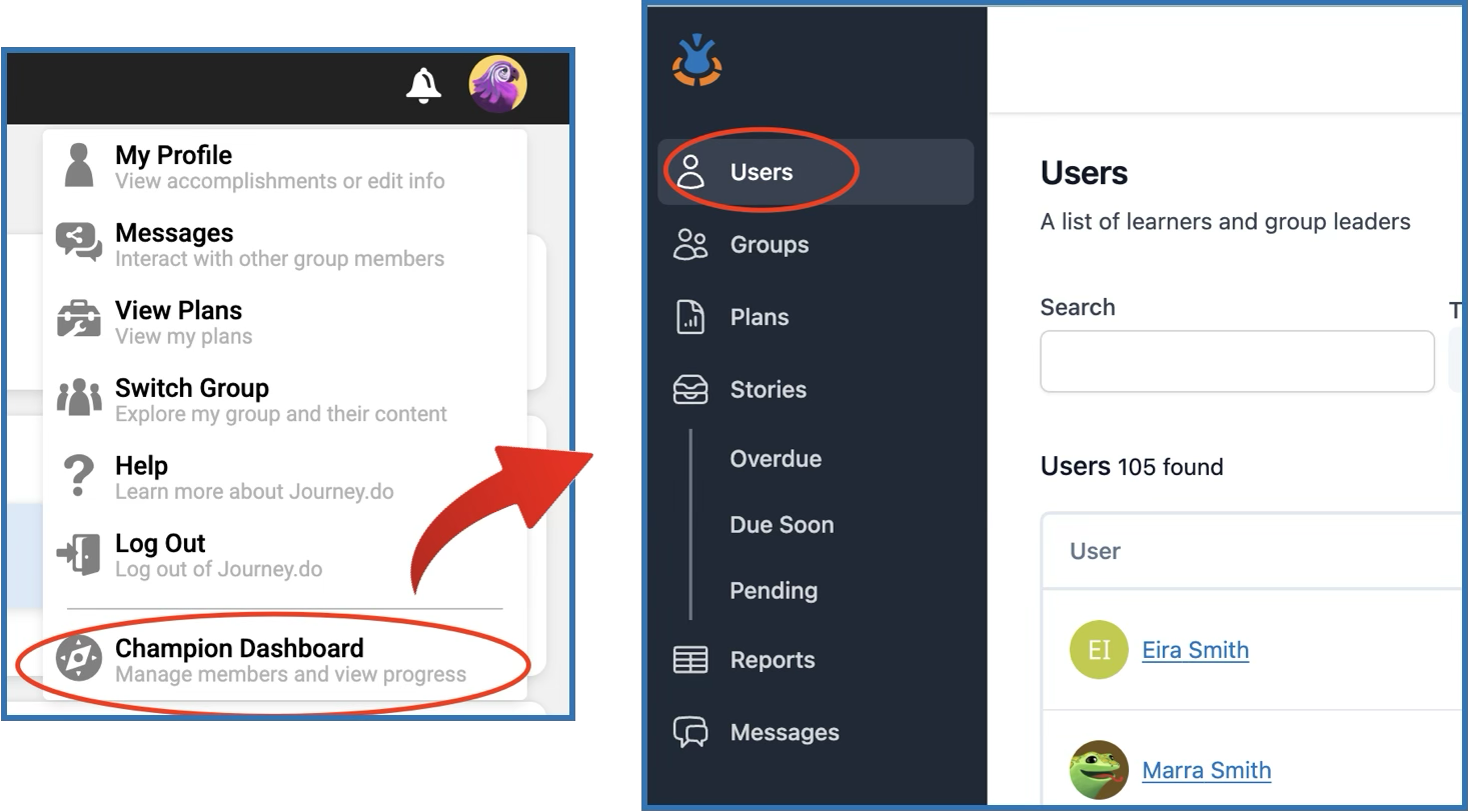 Access the Champion Dashboard and click on the Users tab.