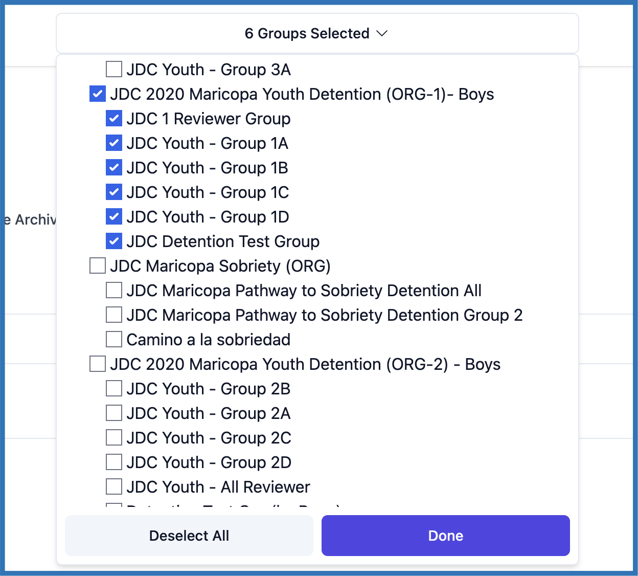 2. Using the group selector dropdown at the top of the dashboard, select the group/s to filter the members that you want to see. The table will display all members of the groups you selected.
