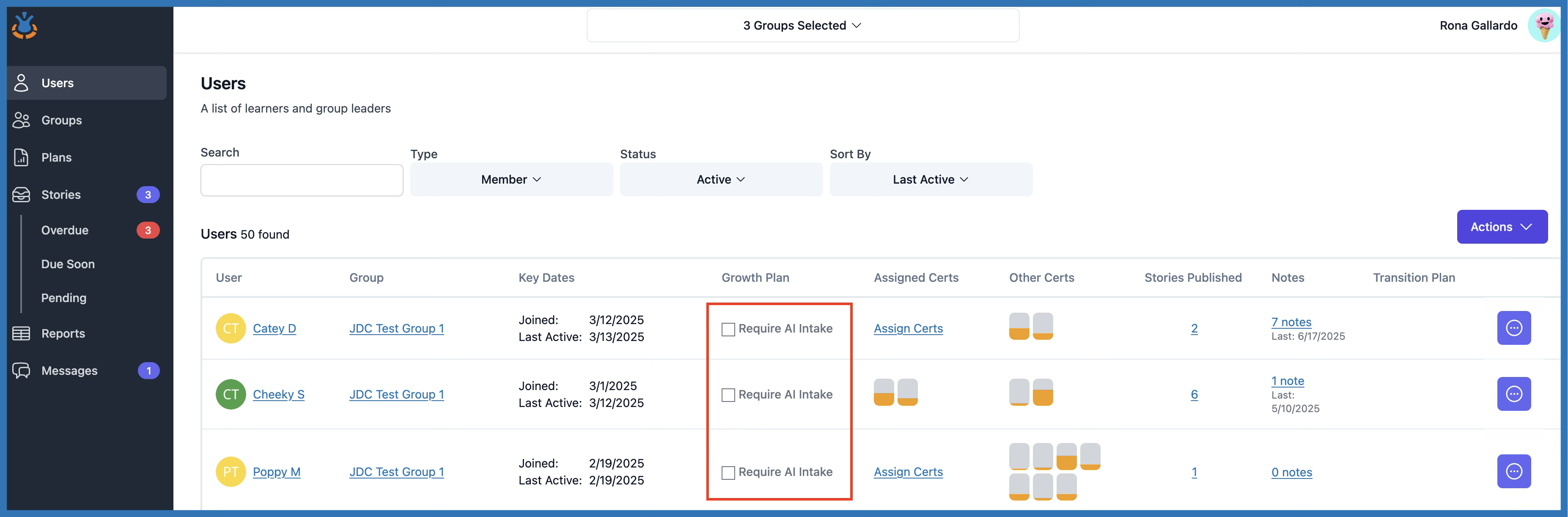 Note: If the learner already has a Growth Plan, the Require AI Intake option will not appear.